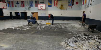 Mercury flooring removal in a gym slated for renovation.