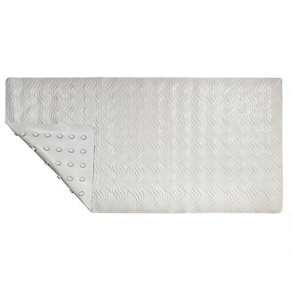Skid resistant rubber base ensures that the bath mat grips firmly to the floor for safety when placed on a dry surface.